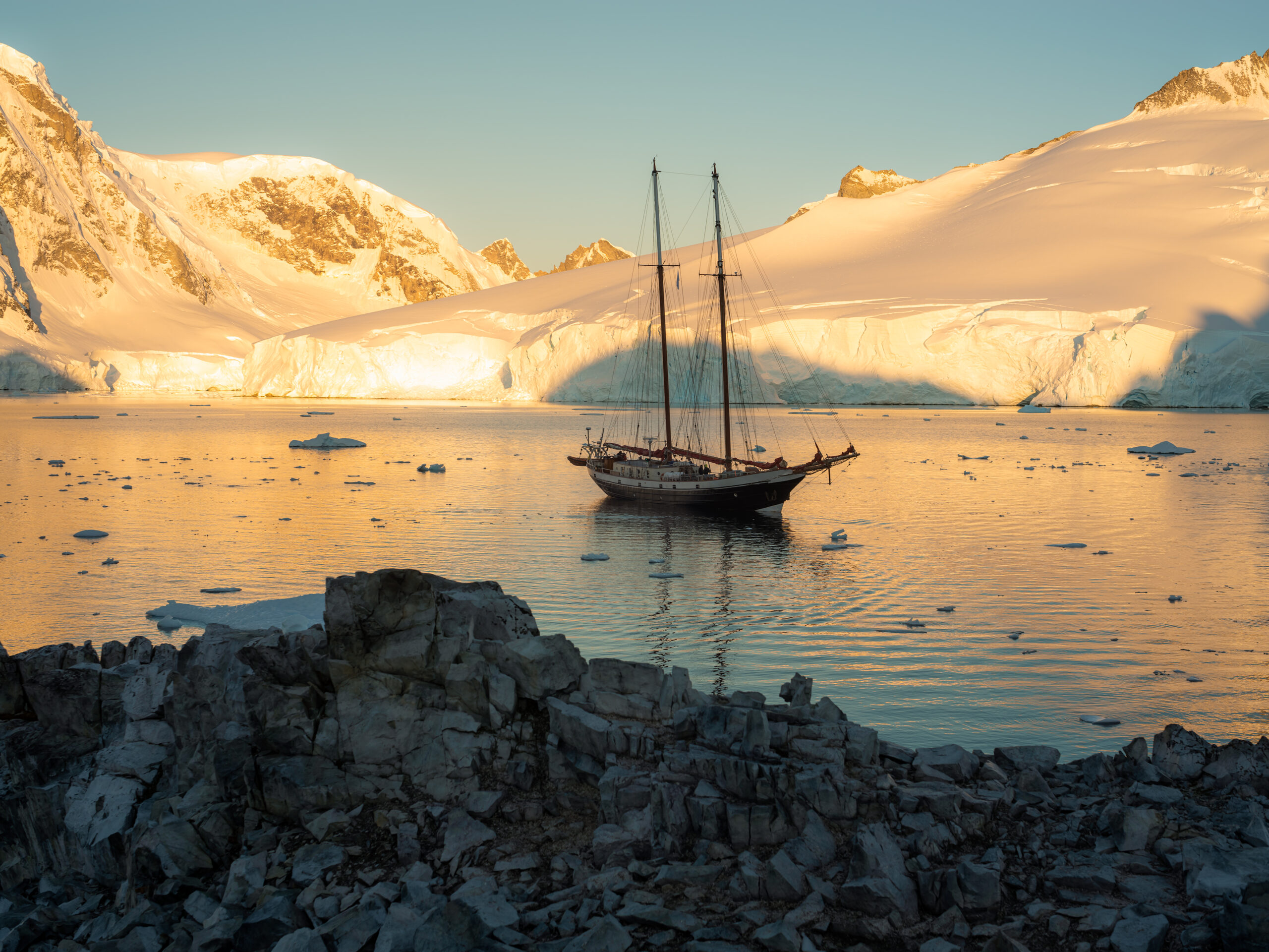 Diese einzigartige Fly & Sail-Expedition bringt dich von Punta Arenas ins Herz der Antarktis, wo du an Bord eines Segelschiffs abgelegene und unberührte Gebiete erkundest. Dich erwartet eine spektakuläre Natur mit Eisbergen, Gletschern und einer reichen Tierwelt aus Pinguinen, Robben und Walen – oft bei nahezu durchgehendem Tageslicht. In einer kleinen Gruppe besuchst du ikonische Orte und erlebst die Antarktis auf eine intime und abenteuerliche Weise.