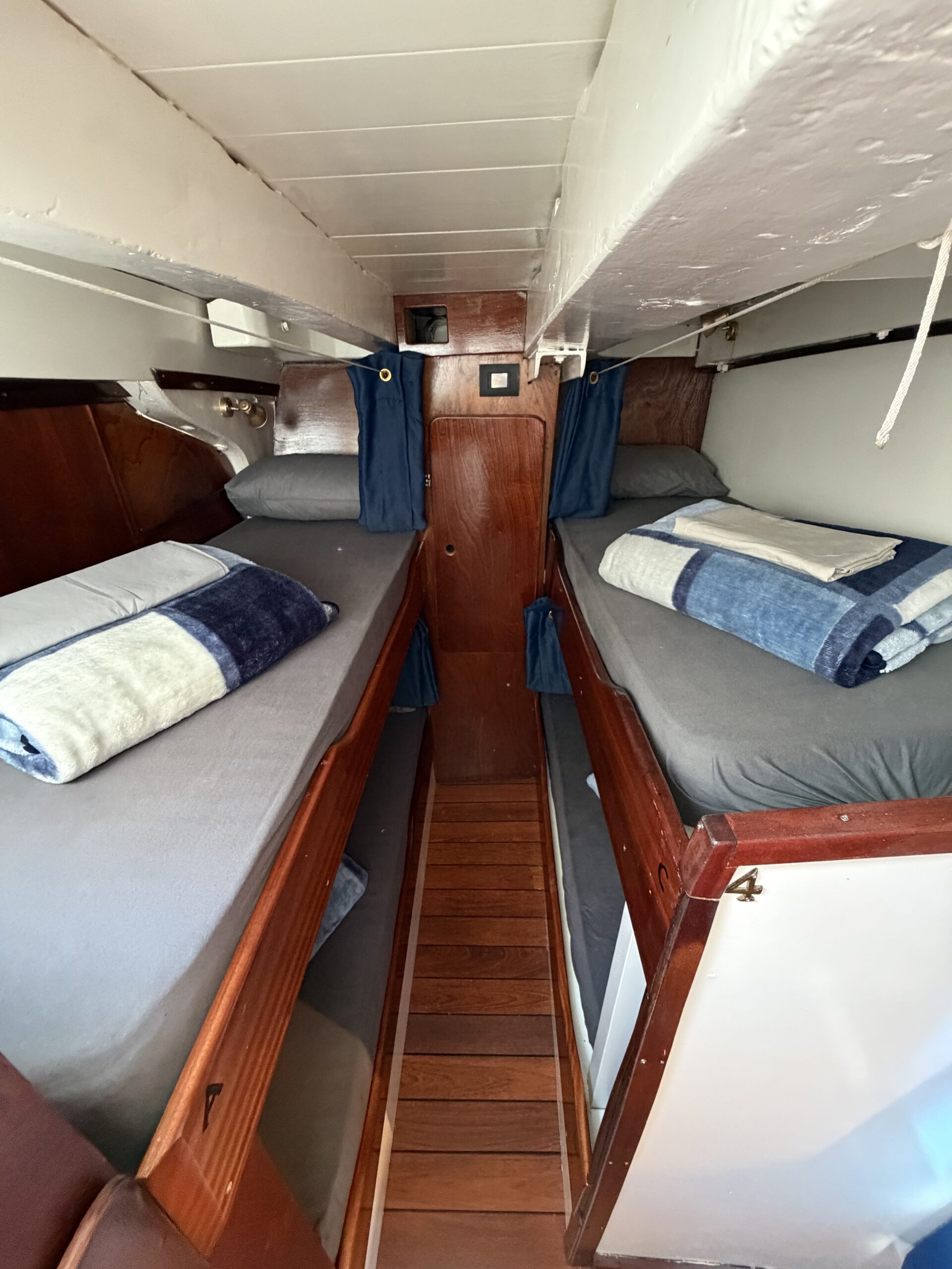 Der Kapitän und seine Familie wohnen an Bord, haben jedoch ihre eigenen separaten Wohnbereiche. Gäste werden in komfortablen Kabinen untergebracht. Es gibt private Doppel-/Familienkabinen mit jeweils einem Doppel- und einem Einzelbett sowie geteilte Kabinen für Alleinreisende. In den geteilten Kabinen hat jedes Bett einen Vorhang für mehr Privatsphäre.