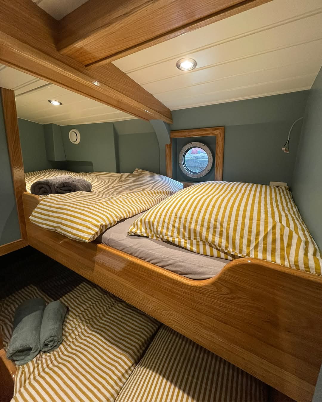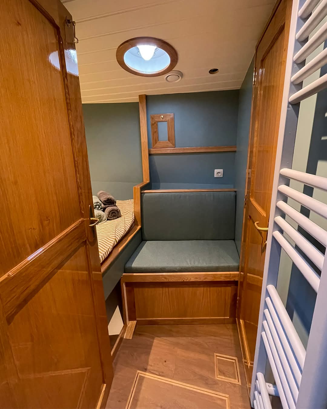 - Jede Kabine ist mit Bettwäsche, Handtüchern, Seife, Duschgel und Shampoo ausgestattet.