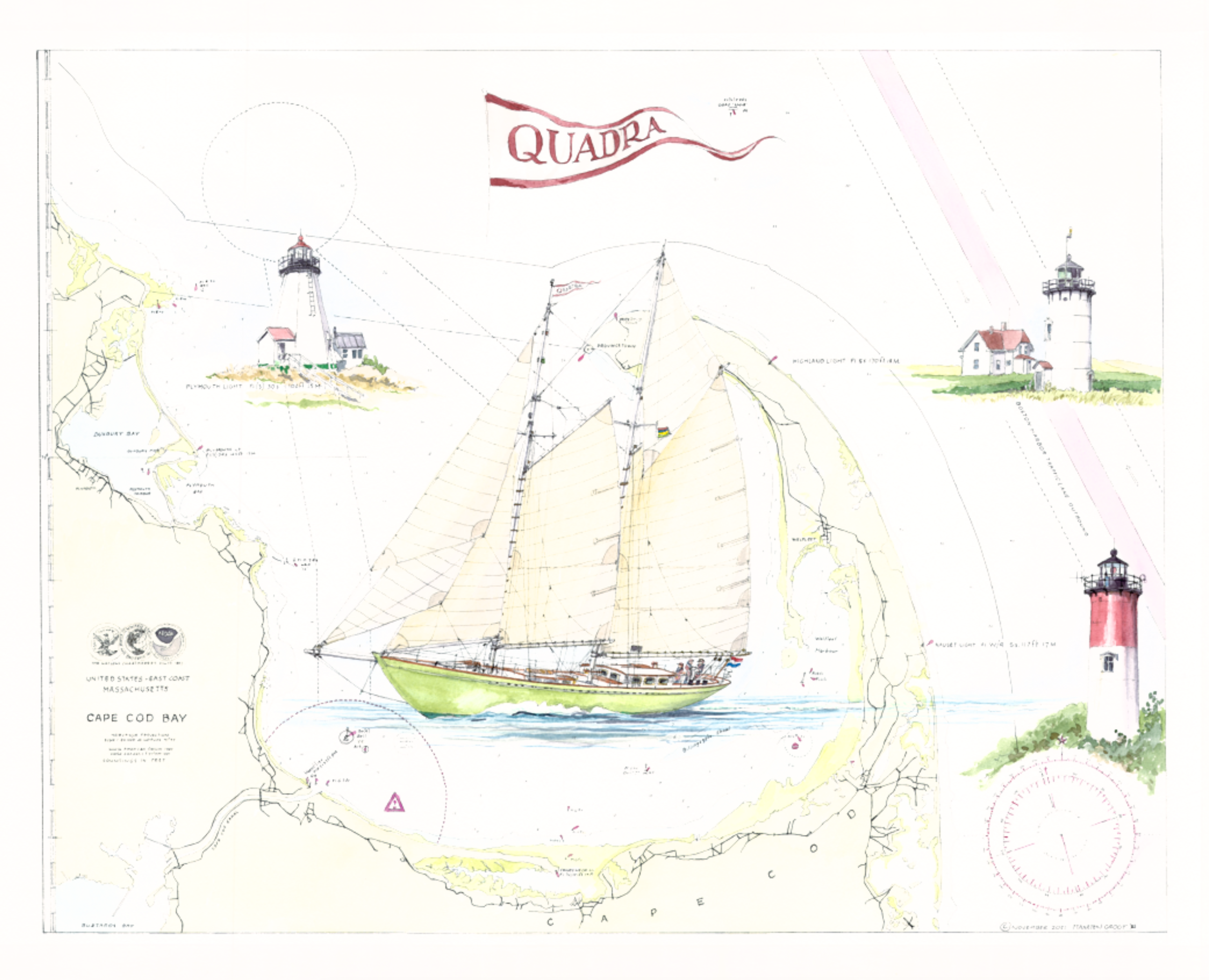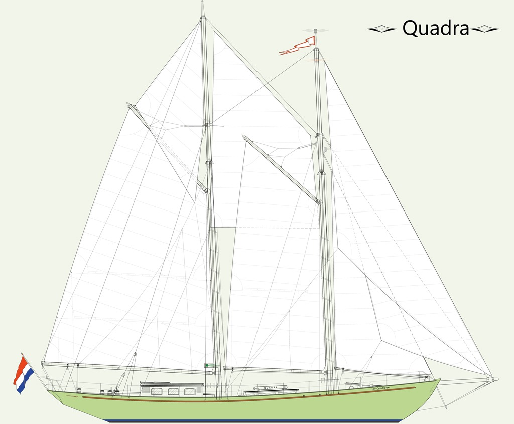Die klassische Segeljacht Quadra ist ein Zweimast-Schoner, gebaut nach dem Vorbild der Lelanta II des bekannten amerikanischen Schiffdesigners John Alden. Seine Entwürfe sind nicht nur für ihre Eleganz und Anmut bekannt, sondern auch für ihre hervorragende Stabilität. Außerdem lässt sich das Schiff mit einer kleinen Besatzung leicht segeln.